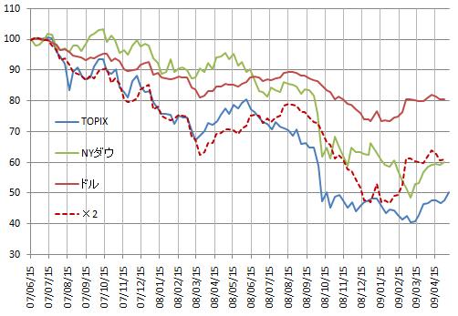 しかし、個別銘柄のように情報集めるたびに一喜一憂しなくなったとはいえ、同じ頃に買ってたら同じように下がってるわけだから、単にタイミングの違いというだけだな。